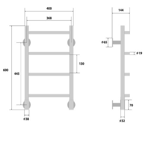 Energy H 600x400 (G5) - полотенцесушитель электрический типа лесенка выполнен из высококачественной пищевой нержавеющей стали. Четыре выпуклые стационарные перекладины, равномерно разнесённые по высоте, позволяют максимально эффективно использовать всю площадь полотенцесушителя для сушки полотенец и других вещей из ткани, а также дополнительного обогрева ванных комнат, душевых, санузлов.