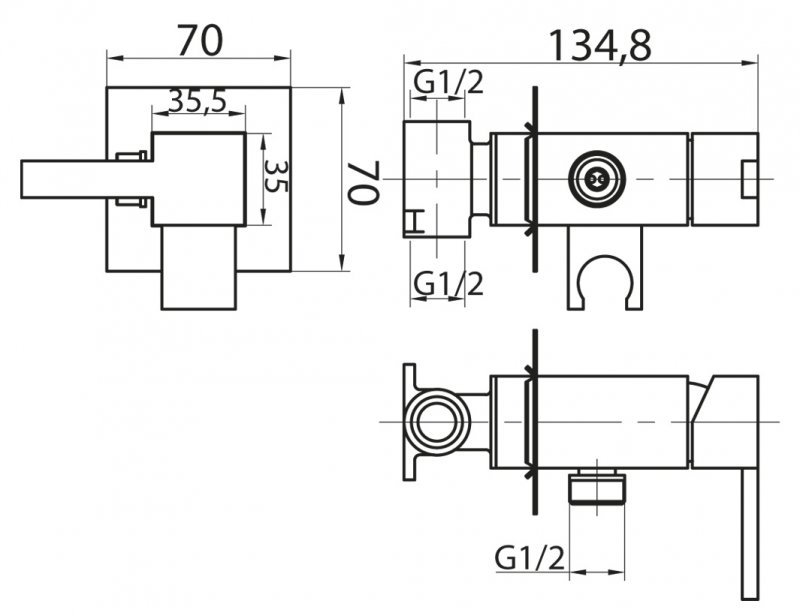 Оснащение: штуцер с держателем для душа,